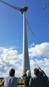 Na het bezoek aan ECN vervolgden we onze reis naar Wieringermeer om daar een grote windturbine (windmolen) van dichtbij te zien en te horen.